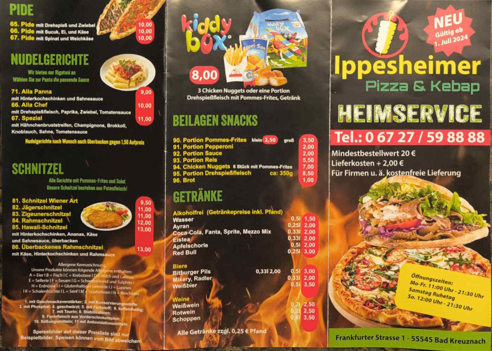 Der Ippesheimer Pizza & Kebap Imbiss befindet sich kurz vor dem Ippesheimer Kreisel auf der rechten Seite.